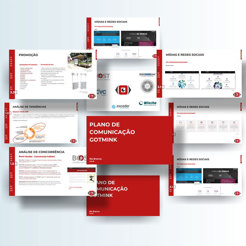 • Identificação e análise de elementos do branding, do business, dos serviços específicos que oferecem, das temáticas e promoções de suas campanhas, da presença digital com métricas de engajamento, além dos diferenciais competitivos